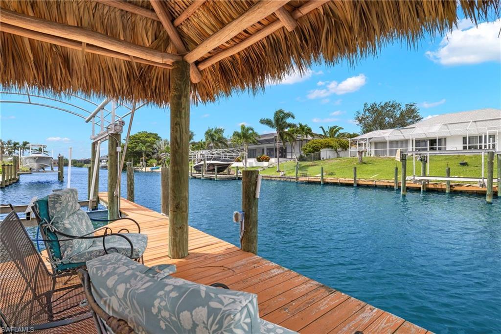 This is a VACATION RENTAL only. Owner will not consider annual rentals. Weekly rentals are welcome. Come and live the Florida dream at Villa Aleena, an amazing vacation home in SE Cape Coral. It is in a quiet area with a short connection to many great restaurants, bars, and supermarkets. When living in this beautifully outfitted Cape Coral vacation villa, you will understand why people come to Florida from all over the world for a memorable vacation. This 2427 sq. ft. vacation home is located on intersecting Gulf access canals and features 4 bedrooms, 3 baths, a hot tub, and an electric heated pool. KEY FEATURES: This home is pet friendly; It has kayaks and bicycles for guests. Living Room: The great room with a large flat-screen 4K TV has comfortable leather seating. You will enjoy DirecTV with all the premium movie channels. There is also a room with a pool table, a bar with a large flat-screen wall-mounted TV, and comfortable recliner seats. Dining Room: This area features a table with space for eight guests. Kitchen: Located next to the dining room, the kitchen features granite countertops, stainless steel appliances, and an attached breakfast bar. Master Bedroom/Bathroom: The spacious master bedroom has a King-size bed, TV, and a roomy walk-in closet. The large master bath features a tub, a walk-in shower, and separate vanities. Guest Bedrooms/Bathrooms: Due to the split floor plan, the other 3 bedrooms are on the other side of the house for optimal privacy. There is a guest suite with a King-size bed and its own bathroom, which doubles as the pool bath. The two remaining guest bedrooms share the third bathroom and offer a comfortable Queen in one and two extra long Twin beds in the other. Pool/Lanai/Dock: Outside on the lanai, you will enjoy a tropical retreat, complete with an electric heated pool, a hot tub, and a fantastic waterfront view. Even here, you can watch your favorite shows on a large flat-screen 4K TV. Or fire up the convenient gas grill and BBQ some steaks for an exciting family dinner. You can walk down to the sun deck for some tanning sessions from the lanai or gather with your friends at the bar under the large Tiki hut for some great cocktails. Of course, you may use the boat dock and the 10,0000 lbs. boat lift for your rental boat. Why not trying your luck with fishing in the Gulf access canal, as there are several fishing rods in the garage. No fishing license is required to fish from the dock! Villa Aleena offers a lot for everybody, including two bicycles. What are you waiting for? Book Villa Aleena now! You deserve your Florida dream vacation.