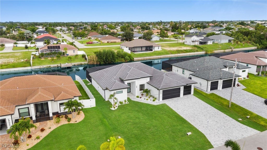 Discover the perfect blend of coastal elegance, modern comfort, and premium waterfront living in this impeccable 4-bedroom, 3-bathroom home located in the heart of SW Cape Coral’s most desirable neighborhood — and out of the flood zone (Zone X) for added peace of mind. Boasting over 2,100 sq ft of beautifully designed living space, this home offers a light-filled, open-concept layout, gorgeous ceramic tile floors, and high-end finishes throughout. Every detail is crafted to impress and built to last. Triple Car Garage – Room for vehicles, storage, and more Impact-Resistant Windows & Doors – Stylish protection and energy savings Durable Tile Roof – Sleek style meets long-term performance Resort-Style Pool – Fully screened with paver deck, Bright, Airy Layout – Modern design that welcomes natural light from every angle Lush Landscaping – Tropical curb appeal This is not just a home — it’s a lifestyle upgrade. Whether you're a full-time resident, seasonal owner, or savvy investor, this property checks every box for luxury, location, and long-term value.