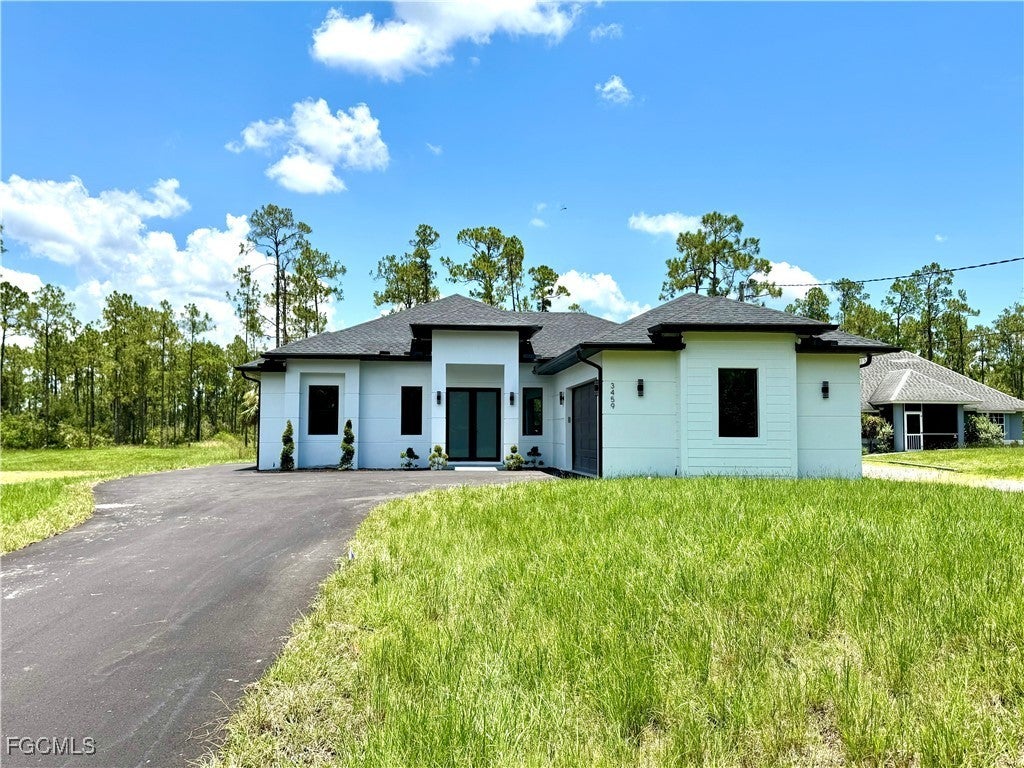 READY TO MOVE IN! 100% Upland Lot 1.14 acres. Beautiful New Construction Home with plenty of space on the side to bring your car, truck or boat to the back. This property features 3 Bedrooms plus Den and 2 bathrooms - NO HOA. All Tile Throughout, Hurricane Impact Windows and Doors, Stainless Steel Appliances, Quartz countertops, automated sprinkler system, and asphalted driveway. Master bedroom has 2 large walk-in closets. Master bath has double vanity sinks and a large shower with glass enclosure. With a 2-car garage for convenience and storage. One of the few streets wit CITY WATER connection available for your convenience. This home offers the perfect blend of modern luxury and comfortable living. Zoned for top-rated schools: Big Cypress Elementary, Cypress Palm Middle, and Palmetto Ridge High. Don't miss the chance to make this your dream home.