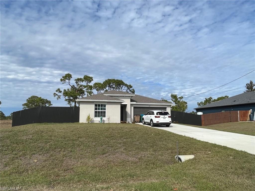 Come see this beautiful Property built in 2024 in beautiful Cape Coral, FL. This house features convenient washer/dryer, a 2-car garage, and a driveway for ample parking space. The Hartford split floorplan features a beautiful spacious open kitchen equipped with stainless steel appliances, a beautiful island, pantry and a formal dining area with high ceilings throughout. Schedule your showing today!