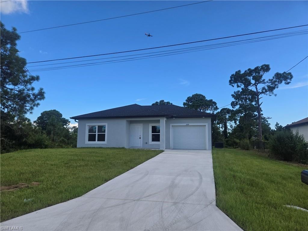Welcome to a stunning brand- new home nestled in the vibrant community of Lehigh Acres, FL. This two-bedroom, two-bathroom home offers a private setting with a large quarter-acre lot, perfect for those who value space and privacy. The home features an eat-in kitchen equipped with stainless steel appliances, granite counters, plenty of cabinets, and a pantry for all your culinary needs. The ceramic tile floors throughout the house add a touch of elegance and ease of maintenance. The primary bedroom comes with an en-suite bathroom that boasts a large tiled shower and wood shaker cabinets. The house also includes a one-car attached garage with a washer and dryer hook-up. Pets are welcome in this cozy cottage. The property also features impact windows for storm protection. Enjoy the Florida weather on the open front porch or the covered rear lanai overlooking the large backyard. Conveniently located close to downtown Lehigh and SR 82, and all the amenities Lehigh Acres has to offer. This move-in ready home is one of the lowest-priced rentals in Lehigh Acres. Don't miss out on the opportunity to be the first to call this brand new home yours. SEE IT TODAY!