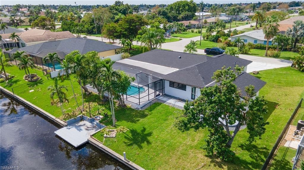 Boater's paradise just a couple minutes from the Caloosahatchee river and then off you go to open waters and the beaches. Don't miss it, call and schedule your appointment to experience the excellent display of workmanship and detail in this home. Without a doubt hands down the gem of Cornwallis. This is a beautifully designed and totally remodeled home in a modern, fresh and inviting style with a new open layout that makes everything flow. Completely remodeled in 2024 Direct Gulf Access home on triple lot (.34 acres). This incredible home boasts just under 2100 sq ft of living area with 3 bedrooms and 3 baths and 3895 total sq ft. Just installed are new oversized high gloss finish porcelain floors throughout, hurricane impact windows and doors, new HVAC, plumbing and electrical, kitchen cabinets, quartz countertops and appliances, bathroom and fixtures. New grass, garden coping, landscaping and sprinkler system was just finished last week. The pool was completely redone with new skimmer, pool lights and the entire deck as well. The roof was replaced in November 2023.This property sits in the Cornwallis neighborhood which did not flood during Hurricane Ian. FABULOUS HOME!!!MOTIVATED SELLER OFFERS ACCEPTED.