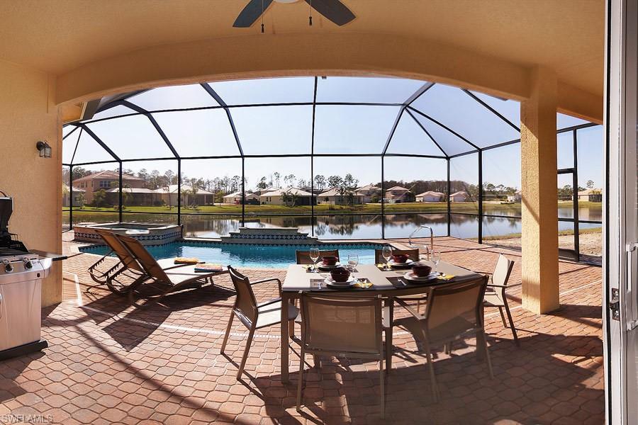 This Fabulous Home with a modern flair is available for SHORT-TERM RENT. From 12/20/2025 for three months or longer until September. The minimum stay is 90 days. Rent price is $4,500 + 11,5% Sales and Tourist Tax, per month. The longer you stay, the more you'll save. The Rent includes Water, Cable, wireless internet, and 500KW.hr Electric is free per month. This beautiful house offers three bedrooms, three bathrooms, & den, tiles throughout the living area & carpet in the bedrooms. The large kitchen is fully equipped with stainless steel appliances. The Great room offers a dining area and a living room with a big flat-screen TV. The Lanai is spacious, featuring a large pool & spa, as well as a lake view. The Master bedroom features a king-size bed, a seating area, a TV, a walk-in closet, and a large master bathroom with a shower, a garden tub, and his & her vanity. There is a Den for your Home Office. This fabulous home is situated in a quiet Gated Community, featuring a community pool, spa, sauna, gym, Tennis, and pickleball Courts. It is conveniently located near shopping, dining, and golf courses. Call today to reserve your winter home in SW Florida