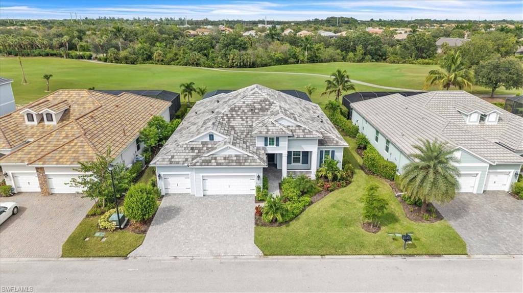 A rare opportunity presents itself to own an exquisite Neal Kiawah model with every upgrade imaginable in the active and beautiful gated community of Verandah. This luxurious 4 Bedroom+Den, 3 bathroom, 3 car garage home features nearly 3000 sq. ft. of living space with contemporary decor and the latest upgrades and colors. Upon entering the home through the large foyer, you will be greeted by an open floor plan with high tray ceilings, tile flooring, wine cooler, enhanced lighting, fan fixtures, and custom window treatments. The gourmet kitchen adjacent to the family room boasts upgraded appliances, quartz countertops, custom cabinetry, a side coffee bar, large island for dining, entertaining or cooking prep, pendant lighting, and a walk-in pantry. The large breakfast nook or dining area offers more cabinet space, upgraded lighting, and easy access to the outdoor area with the spectacular view. The primary bedroom suite is a private oasis with sliding door access to the lanai, plantation shutters, spa-like tub, walk-in shower, and a generous walk-in closet with custom cabinetry. The other 3 bedrooms are spacious and feature plantation shutters, large closets, and carpet & tile flooring. Barn doors separate two bedrooms where the closet space was combined for more storage for use for a sewing, art or other hobby area. The Den features a custom built-in wall unit with accent lighting and glass French doors. The home also features an air-conditioned 3-car garage with new built-in storage, custom closets, and a whole house generator. Plantation shutters and blinds adorn all the IMPACT windows. The outdoor space is like a luxurious resort with a built-in kitchen featuring a custom natural gas grill, mini fridge, garbage disposal and ice machine. The lanai area has multiple TVs, an elegant fireplace, multiple seating areas under roof, and electric storm shutters when needed. The salt water pool/spa overlooks the Golf Course with a northeastern exposure and has many areas for sunbathing. Complement this with an extensive landscape and lighting package and your outdoor space converts into a resort paradise. The Verandah community offer something for everyone and it includes amenities such as 2 Championship Golf Courses designed by Jack Nicklaus and Bob Cupp, tennis facilities, pickleball courts, a state-of-the-art fitness center, bocce courts, kayaks, a dog park, playground, 9 miles of walking and biking paths, multiple restaurants, and an active social calendar throughout the year. This property truly offers the ultimate Florida lifestyle for family and friends. Don't miss out on the opportunity to own this luxurious home in Verandah and find your place in paradise.