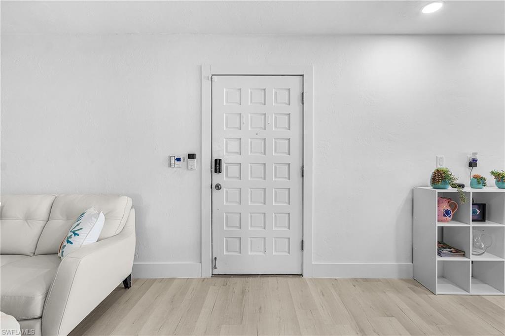Experience the best of waterfront living in this completely renovated first-floor condo located just minutes from downtown Cape Coral. Every detail has been thoughtfully updated to provide comfort, convenience, and modern luxury. Enjoy serene canal views from every room and your enclosed lanai, just steps away from the community pool. The impact glass windows and sliders offer peace of mind, while a Simply Safe Security System and Nest thermostat—both accessible remotely from your smartphone—ensure ease and safety wherever you are. Inside, luxury vinyl flooring flows throughout the open layout. The fully renovated kitchen showcases premium Samsung smart appliances, including a refrigerator with a separate beverage drawer, internal ice maker, and water pitcher dispenser, as well as a smart range and microwave—all controlled from your phone. Recessed lighting and modern fixtures add a sophisticated touch. Both bathrooms are completely updated with elegant glass shower doors, Bluetooth speaker fan systems, and stylish backlit mirrors. The master bedroom features a spacious walk-in closet, while ceiling fans from Dan’s Fans—each remote-controlled or smartphone-operated—keep every room perfectly comfortable. Additional highlights include a new Rheem tankless water heater, an in-unit washer and dryer, and a turnkey option for immediate move-in. Boating enthusiasts will love the private boat slip—available for just $100 per year—with lift installation capability and room for up to a 30-foot powerboat or sailboat with a 4-foot draft. With no bridges and direct Gulf access, your boating adventures begin right outside your door. The clubhouse offers additional amenities, including a large pool, outdoor grill and dining area, bathrooms, showers, and extra laundry facilities. Located only 24 minutes from Fort Myers Beach and 29 minutes from Sanibel Island, this condo offers the perfect blend of coastal convenience, modern smart-home living, and relaxed waterfront charm.