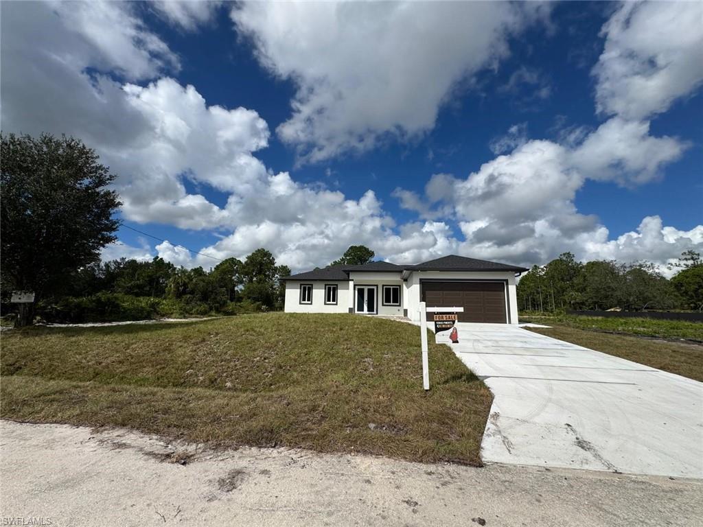 Beautiful property, the investors are giving contributions for closing costs and are open to making a fair negotiation. This beautiful property, built in 2025, is located in a central area of the Lehigh Acres, approx 2 miles from the schools, 2.5 miles from the central Lee Avenue and approx 3 miles from the Hospital. Built on a 0.5 acre lot, with luxurious finishes. Enjoy a completely porcelain floor and modern kitchen and bathroom cabinets. The A/C unit is 3.5 tons. It also has a double parking lot and a beautiful driveway with modern pavers. Strategic location, the seller have a survey copy if you want to save money. A new washer and dryer are included in your purchase. Septic Tank with 2 years of free service and guaranty