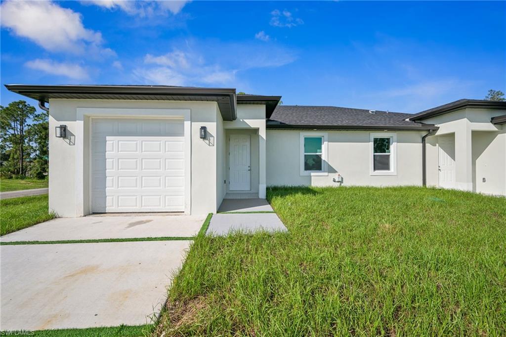 Ready for immediate move in! Brand new duplex with easy access to SR-82! Offering 2 bedrooms + a den, 2 full bathrooms, and a 1-car garage, providing a total of 1,200 square feet of modern living space. With modern tile flooring throughout, sleek white shaker cabinets, quartz countertops, and stainless-steel appliances, this property is move-in ready and low maintenance. The garage features an epoxy-coated floor, and you'll enjoy relaxing on your private rear lanai—perfect for relaxing or entertaining. Don't miss this chance to be the first to live in this brand new home!