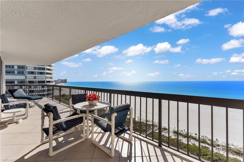Welcome to The Duchess ... one of the premier condominiums on beautiful Marco Island. Step into the secured, and beautifully designed, lobby where you'll be mesmerized by the towering ceilings. Then, ascend up the glass elevator as you take in the panoramic views of the island and Barfield Bay. As you enter the impressive double door entry into your new home, the views of the Gulf of America are sure to take your breath away. The eat-in kitchen, previously renovated by Cornerstone Kitchens, is a cook's delight with double wall/convection oven, granite, stainless appliances, large pantry/utility room with an abundance of cabinetry, and pass through window that overlooks the dining area. The generous great room, measuring 30x28, is nothing short of impressive and opens to the wrap-around, 600 sq ft lanai. Located just off the living area through French doors, is the stunning primary suite that boasts two sets of sliders that provide panoramic views of both the city and Gulf. Primary bath is well-appointed with double sinks, large soaking tub, plus separate shower, while the second en-suite offers a combo tub/shower. The third bath is located just outside the 3rd bedroom and features a walk-in shower. The most impressive feature of this home is its sunrise and/or sunset views from literally every room! The layout and lanai area make this home the perfect space for those to love to entertain! The most sought-after stack in The Duchess (1), this home will not disappoint! Amenities include a community pool and BBQs overlooking the Gulf, spa, fitness center, tennis/pickleball, plus guest suite available for short term rentals by owners. Other features include secured under-building parking for added security, ample guest parking, plus extra storage off the lanai with additional storage in the building. The focal point of The Duchess is its access to miles of pristine, white sandy beaches overlooking the beautiful turquoise waters of the Gulf. Walking distance to J W Marriott, Tiger Tail Beach Park, plus a myriad of shopping and dining options, there is something for everyone! Your dream home awaits!