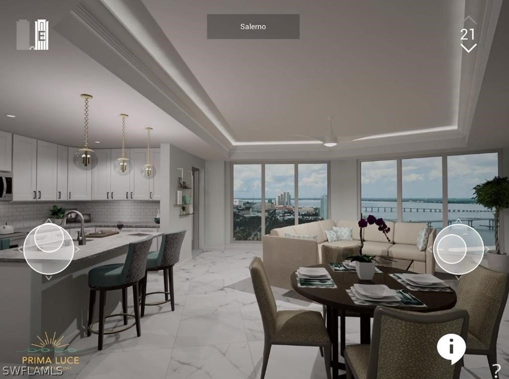 PRIMA LUCE on The Waterfront brings Luxury Condominium living on the River to vibrant Downtown Ft Myers. Breathtaking water views are offered from every one of the 220 units in two 22 story towers. The SALERNO floor plan offers a spacious residence featuring a generous great room and kitchen with sensational floor to ceiling riverfront views. Enjoy the sunset from two vantage points, this unit boasts two balconies with gorgeous waterfront views PLUS a LUX upgrade selections package. Need extra parking, no problem! This unit comes with 2 deeded parking spaces. Resort-style amenities include a zero-entry gas heated swimming pool, whirlpool, yoga studio, and fitness center, library and business center, and a community social space complete with catering kitchen. Spend the day on the water with friends and dock on one of two day docks for the while you stop for lunch or quench your thirst with sunset margaritas. Pet-friendly and located in the Historic River District of Downtown Fort Myers, Florida, this unit is only a short walk, drive or bike-ride from fine dining and shopping, a vibrant arts and entertainment scene, boating and nature activities, and so much more!