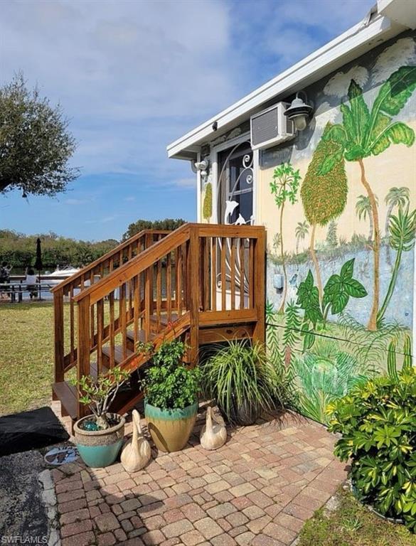 RIVERFRONT VIEW! GULF/RIVER ACCESS 55+ COMMUNITY - Roof improved in 2023 with Polyurethane foam insulation. New stove and microwave 2023. Where else can you get over 70 FT OF RIVERFRONT, GULF ACCESS, Fully FURNISHED-TURNKEY property for 129K! LOW HOA. Sellers doubled the square footage by building out space where lanai once stood. Barn doors, custom lead glass doors, custom built in shelving, wood shoe rack, tumbled marble showers. Great year round residence, weekend getaway or seasonal escape for in this quaint historic boating community. 16 first come first serve boat slips allow you to dock your up to a 20ft boat, floating docks recently approved. Access the beautiful Caloosahatchee River for fishing, water sports or sunset cruises. There is an open air clubhouse and riverside deck areas for socializing at any time of day. WALK OR CYCLE BEAUTIFUL OAK LINED OLD OLGA ROAD. This is OLD FLORIDA at its BEST! Artistic owners custom touches everywhere you look. Check out the photos of the beautiful decorative plywood hurricane shutters! Sorry, no rentals allowed.