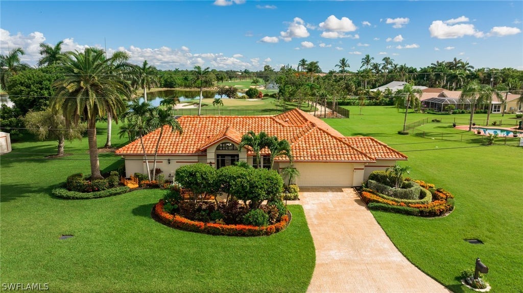 AMAZING! Yes, AMAZING - from the hand-painted wall mural by a local artist in the foyer as you enter this incredible home to the AMAZING views of the beautiful Cypress Lake Country Club golf course from nearly every room in the house! Even more AMAZING – NO HOA FEES!!! With a .84 ACRE LOT ADJACENT TO THE GOLF COURSE and located close to literally everything SW Florida has to offer - beaches, shopping, dining, golf, sports complexes, BB Mann theatre, churches, and airport - you will enjoy a rare combination of privacy and convenience. In just the past several months, THE CURRENT OWNER HAS INVESTED OVER $400,0000 IN RENOVATIONS, including: exterior and interior paint, electrical panel, lighting that includes 139 can ceiling lights with dimmers, ceiling fans, electrical outlets inside and outside, energy-efficient open cell attic insulation, AC in the owner’s suite closet, glass railings for living room, kitchen and bar sink faucets, interior and exterior doors, doors/cabinetry hardware, crown molding, picture frame molding in dining room, state-of the-art washer and dryer, laundry sink, and more! With a stunning front door entry, the home boasts 2619 sf under air with 3 bedrooms and 2.5 baths, a formal living room and dining room, family room, entertainment bar area, and a kitchen with classic cabinetry, granite countertops, and stainless steel appliances. There is a luxurious owner’s suite with a California-style custom closet and golf course view. Additionally, there is a 2-car garage with built-in storage, an attached golf cart garage, and over 2500 sf of screened lanai. The lanai provides the ultimate in RESORT-STYLE LIVING and entertainment space with an OVERSIZED PAVERED PATIO AREA UNDER TRUSS with two ceiling fans, mini bar, TV, sparkling pool, pavered pool deck, hot tub, and lush landscaping. From the lanai you will enjoy both the expansive view of the golf course, the pond, and the sunsets off to the west. Opening to the lanai from the home are triple sliding doors leading from the living room, family room, and owner’s suite that provide not only access to the outside living area but also incredible natural light inside. For security and hurricane protection, there are ELECTRIC SHUTTERS FOR THE SLIDERS as well as NEW HURRICANE IMPACT WINDOWS IN THE LAUNDRY ROOM, BATHS, AND GARAGE. The outside landscaping is professionally maintained and has been enhanced with additional plants, trees, lighting, two wooden bridges, a metal art garden, and updated sprinkler system. Even the shed has been painted and has a new roof and lock. The property is located on a quiet street with city sewer and water in a highly sought-after neighborhood. And I repeat - NO HOA FEES. Some photos have been virtually staged. Schedule your showing today – you will find this MOVE-IN READY home truly AMAZING!