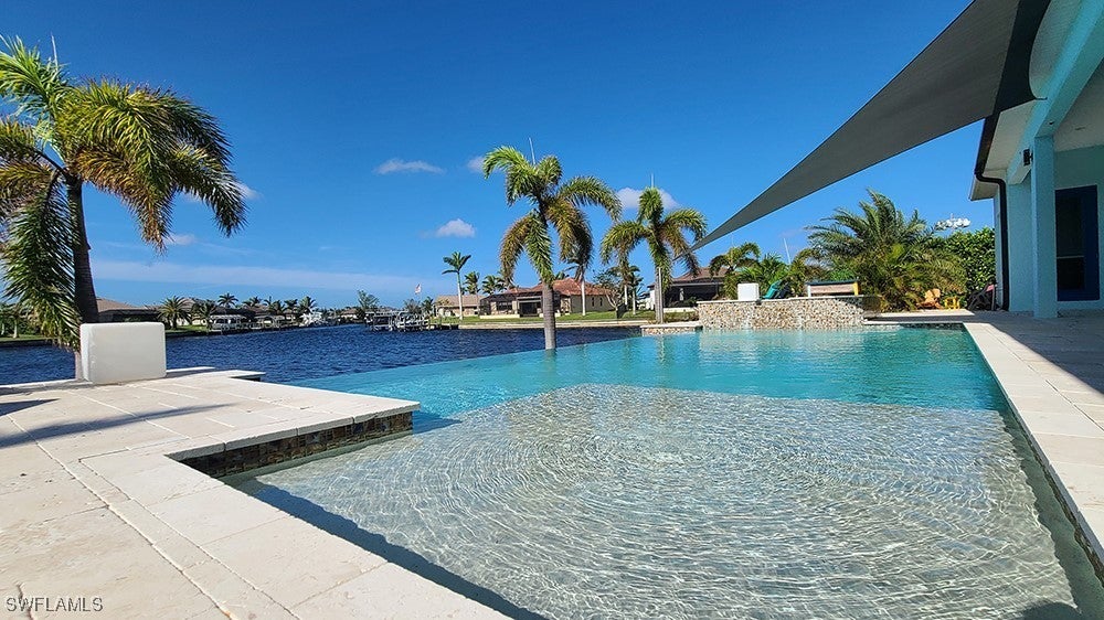Ultimate intersecting-canal view – 147 ft Gulf access. Modern, well-maintained pool home on an oversized, SW rear exposure lot in desirable NW Cape. Seamless indoor-outdoor living: large sliders open to a spacious lanai with infinity-edge solar-heated saltwater pool + spa, outdoor kitchen, and private dock with 10,000-lb lift. Great-room layout with water views from kitchen, dining and primary; generous guest rooms that can double as office/flex. Enjoy daily wildlife (manatees, dolphins, mullet) and fast boating: ~25 min to Matlacha Bridge. Quality finishes, paver drive, meticulous landscaping. Ideal for sunset entertaining; Oct–Apr true Florida indoor-outdoor lifestyle.