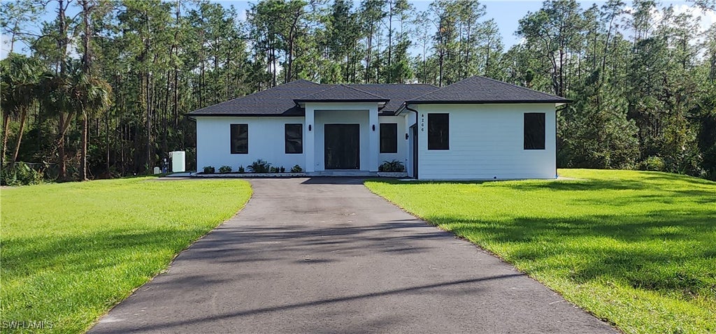 Price just dropped! Seller motivated. Beautiful new construction home in the up and coming Golden Gate Estates on 2.73 acres. Beautiful polished porcelain tiles throughout home. Open concept living room / kitchen / dining room is great for family time and entertainment. White shaker cabinets and quartz countertops in kitchen and bathrooms. Kitchen equipped with gorgeous stainless steel appliances and island offers sitting space for countertop dining. The master bedroom has double doors that lead to nice size lanai area and a spacious walk in closet. Laundry room inside home with a wash sink for convenience. Double car garage has epoxied floor and plenty of space. Walkway from driveway to side door and walkway to back of home. Lanai has sink and countertop for ease of outside entertainment. Reverse osmosis system installed in home with plenty of room to add pool. Tranquil neighborhood, a must see home.