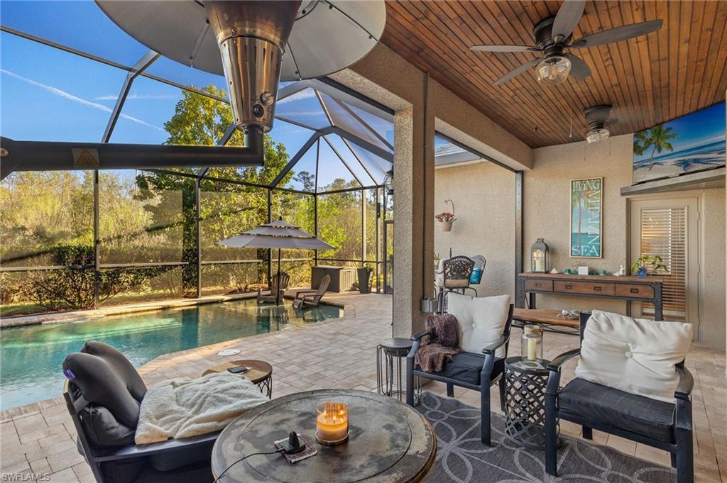 Welcome to your dream home in the Promenade East at The Forum! This stunning 5 Bedroom, 4.5 Bathroom home offers space, style and convenience -- just minutes to RSW Airport, I-75, shopping and dining. The formal Living Room impresses with a 20-ft ceiling, wall of bookcases and elegant bar. The Kitchen features double ovens, 2 refrigerators, a new microwave and a custom coffee bar, opening to the Family Room for easy entertaining. The First Floor includes two bedrooms! A Primary Suite with spa-like bath and a second Bedroom with ensuite Bathroom -- ideal for guests or extended family. Upstairs you'll find a Loft/Office, oversized Bonus Room, plus 3 Bedrooms and 2 Baths. Enjoy your private outdoor retreat with a covered Lanai, tongue-and-groove ceiling and a pool with sunshelf. Additional hightlights: two separate garages, custom finishes, newer zoned AC units, new roof (2023) and full hurricane protection. This rare find combines elegance, comfort, and an unbeatable location -- schedule your showing today! You will not find a better home or value in Lee county!!