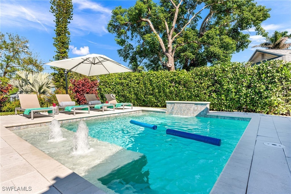 SHORT TERM Vacation home in the desirable Naples Park of Vanderbilt Beach. . . . You will love and enjoy all the OUTDOOR SPACES in this home. A pool with tanning shelf and waterfall, a spacious patio that accommodates a seating area, an outdoor dining table for 8, lounge chairs, an outdoor 65" TV, grill and fully fenced. . . . and that is not all! The second yard, also fully fenced features a charming patio seating for your morning coffee or just a quiet corner to read a book while tanning. . . . . THE INTERIOR offers an open floor plan, remodeled kitchen and baths with all the modern conveniences. . . . . LOCATION: within walking or biking distance to the white sugary sand of Vanderbilt Beach & Delnor-Wiggins State Park & Beach, a few minutes to Mercato which offers quite the selection of restaurants, cafes, shops and boutiques, Whole Food and nightlife. . . . . Golf cart services to beaches and Mercato available through 3rd party. . . . Pet friendly home.