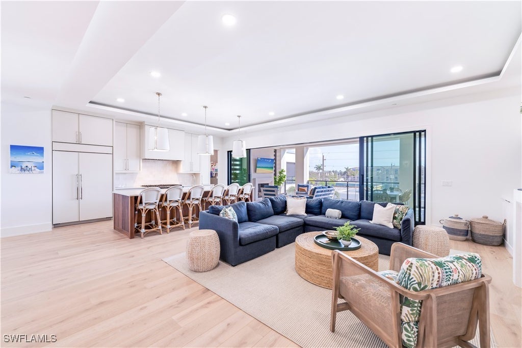 Welcome to Residence 303 — a premier penthouse-style residence at Stella Naples, where modern elegance meets coastal sophistication in the heart of Olde Naples. Completed in 2024, this boutique luxury condominium development offers an unmatched living experience just minutes from the upscale dining and shopping of Fifth Avenue South and the sugar-white sands of the Gulf of Mexico. This one-of-a-kind, top-floor residence is a true showcase of architectural distinction and interior design. Styled with whimsical beach house elegance by the award-winning design team at LVD Spaces, this expansive three-bedroom, three-and-a-half-bath home boasts 2,875 square feet of open-concept living space with soaring 10-foot ceilings and a sun-drenched southern exposure. Every detail has been meticulously curated with highly customized designer finishes, from premium wall coverings to elegant lighting and tailored millwork. The gourmet kitchen is a culinary dream, featuring custom Ruffino cabinetry, quartz countertops, Sub-Zero refrigeration, and a striking custom slate blue Viking range — all seamlessly integrated into the open living and entertaining space. The expansive primary suite is a serene retreat, offering a spa-inspired en-suite bath with an oversized walk-in shower, bespoke fixtures, and generous walk-in closet. What truly sets Residence 303 apart is its exclusive private rooftop terrace — the only residence in Stella Naples to feature a dedicated internal staircase leading to its own 1,123-square-foot private rooftop oasis. Equipped with a built-in outdoor kitchen and natural gas fire bowl, this rare al fresco living space is ideal for entertaining under the stars or enjoying Naples' year-round sunshine in total privacy. Residents of Stella Naples enjoy an array of upscale amenities, including a 42-foot resort-style pool with cabanas and expansive sun deck, a stylish Resident Lounge, state-of-the-art fitness center, and a dedicated turf pet park. Two deeded parking spaces with EV charging capability, private climate-controlled storage, and dual residents’ lobbies offer both convenience and comfort in this intimate, boutique community. Don’t miss this rare opportunity to own the signature residence in one of Naples' newest luxury developments — an irreplaceable blend of style, privacy, and premier downtown location. Residence 303 is truly a masterpiece of Naples coastal modern living.