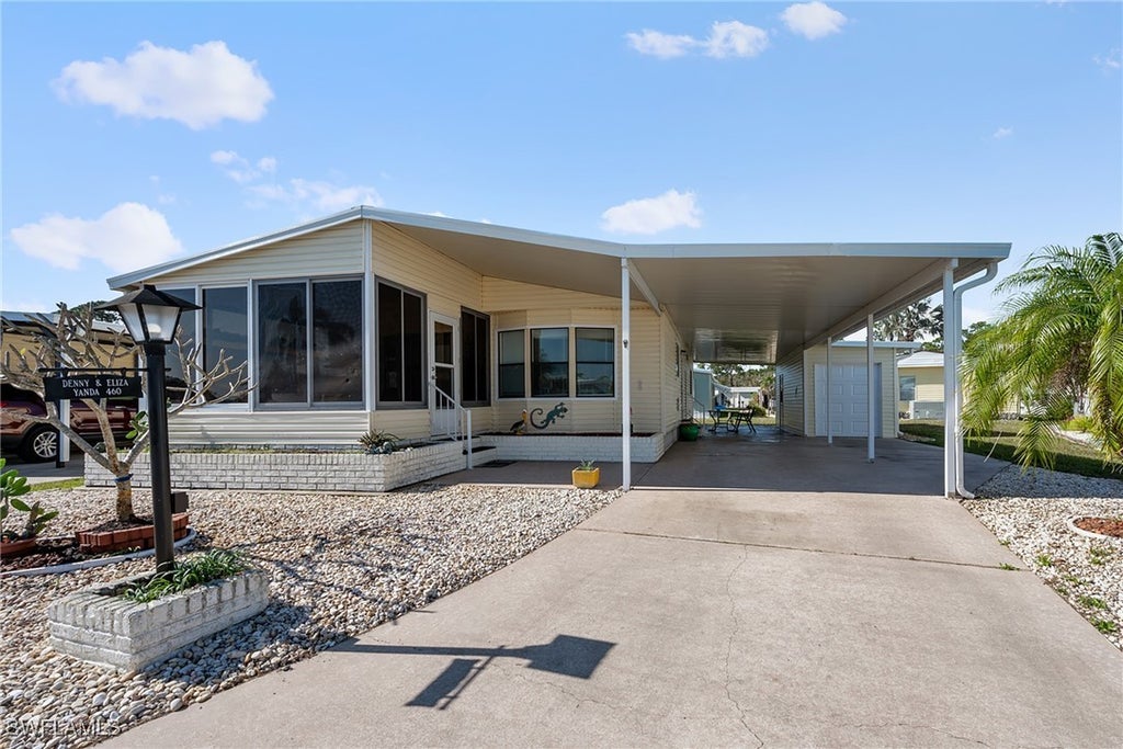 This is your opportunity to own a nice home in Six Lakes Country Club for LESS than $150K. New, rebuilt, cart shed and some recent in-home updates highlight the smart layout where all the space is useful. Bring your toys as the carport is huge and can shelter your car, hobby car and motorcycle. Large golf cart garage has plenty of storage, too. A few simple updates and this home will be ready for many more years of worry-free SW Florida living. You'll love the vibrant, 55+ community, too, with pickleball, tennis, shuffleboard, golf and a full social event calendar — not to mention the fantastic facilities — unrivaled in the area among maunfactured home communities. Six Lakes really does have it all for a price anyone can afford!