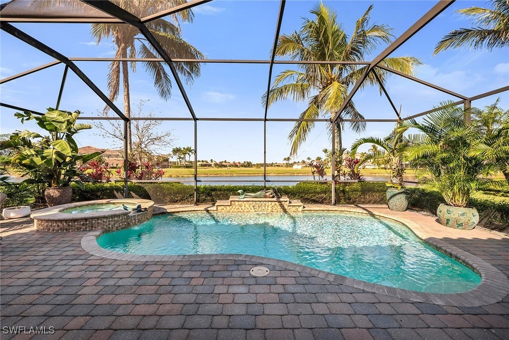 Surrounded by lush tropical landscaping with breathtaking private lake views, this turnkey furnished two-story home in Amador at Fiddler’s Creek offers luxury, comfort and resort-style living. Featuring four bedrooms plus a den, four baths and a two-car garage, this saltwater pool and spa home is designed for relaxation and entertaining. A wide brick paver driveway leads to the elegant entrance, where volume ceilings, arched walkways, crown molding, and abundant natural light create an inviting ambiance. The open kitchen has been beautifully updated with new quartz countertops, backsplash, under-cabinet lighting and a touchless faucet, while shaker-style cabinetry, a walk-in pantry and stainless steel appliances, including a five-burner gas range, microwave, French door refrigerator and dishwasher, make it a chef’s delight. The dining area and living room, enhanced with floating shelves, flow effortlessly to the screened lanai through expansive glass sliders, offering seamless indoor-outdoor living. The owner’s suite is a private retreat with bay windows, wood flooring and two walk-in closets, while the en-suite bath features dual vanities with a makeup counter, a walk-in shower and a soaking tub. The first floor also includes a guest bedroom with an adjacent full bath, along with a den with tray ceilings, ideal as an office or study. Upstairs, two spacious guest bedrooms offer privacy and comfort. Both have shower-tub combinations, with one featuring an en-suite bath and the other a full bath nearby. The sprawling lanai is designed for exceptional outdoor living, featuring a heated saltwater pool and spa with a waterfall feature, a sun area with seating and a fully equipped outdoor kitchen with a built-in grill in 2022, hood, and mini refrigerator. New manual and electric hurricane shutters provide added security and peace of mind. Additional highlights include a mudroom with built-in bench and shelving, a new HVAC system, a split air conditioner in the owner’s suite, a laundry room with a Whirlpool washer and dryer, and a garage with a new motor and spring. Fiddler’s Creek offers world-class amenities, including championship golf, resort-style pools, a luxurious clubhouse, fine and casual dining, a full-service spa and a state-of-the-art fitness center. Residents enjoy tennis, pickleball, bocce and optional golf, beach and marina memberships. Conveniently near downtown Naples and Marco Island, this home is the ideal blend of luxury, privacy and resort-style living. Schedule your private showing today!