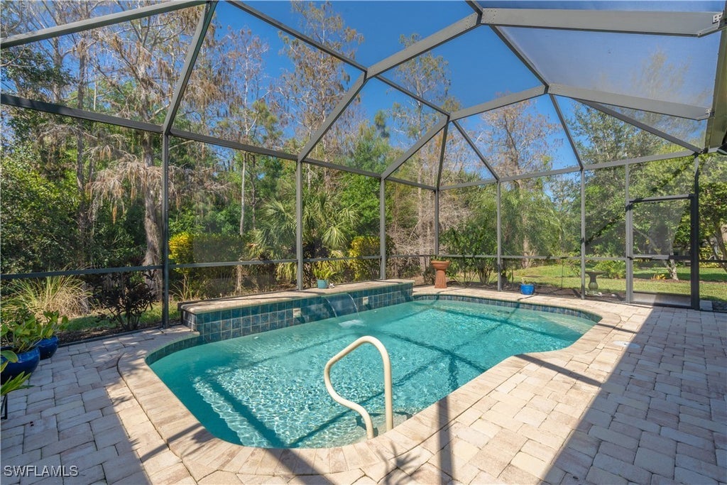 Don't miss your chance to own a Serenity Turnkey Pool Villa in the highly sought-after Winding Cypress community! This meticulously designed residence boasts 3 bedrooms, 2 bathrooms, and a 2-car garage, offering both comfort and style. Step outside to your private outdoor oasis, complete with a tranquil waterfall feature, electrically heated salt pool, built-in speakers, and serene preserve views—the perfect setting for relaxation or entertaining. For added peace of mind there are also electric hurricane screens on the lanai and the exterior was freshly painted in July 2025! Inside, the versatile third bedroom can function as a den or guest room, featuring French doors and a closet. Elegant interior upgrades include crown molding, tray ceilings, built-in speakers, a security system, custom closet systems, and stunning diagonal tile flooring—just to name a few! Winding Cypress is a natural gas community with resort-style amenities! Dine at Shady Palm, the onsite restaurant, or enjoy pickleball, bocce, tennis, a state-of-the-art fitness center, a resort-style pool, a community garden, and even a dog park for your furry friend. This pet-friendly community allows rentals, has low fees, and boasts a prime location—central to Marco Island, 5th Avenue, and I- 75.