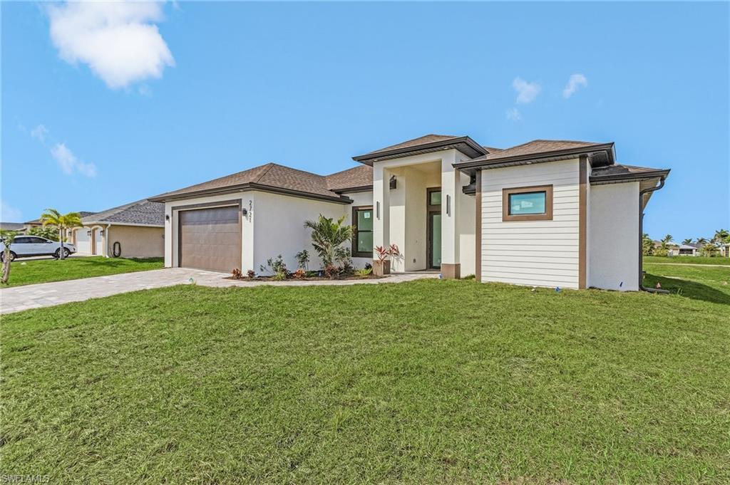 Ready to move in! This brand-new corner lot Cape Coral home features 3 bedroom + den, and 2 bathrooms within 1,600 SF of modern living space and 2,338 SF of construction. Enjoy sleek finishes and an open layout in this pristine, move-in-ready gem. Don't miss this opportunity!