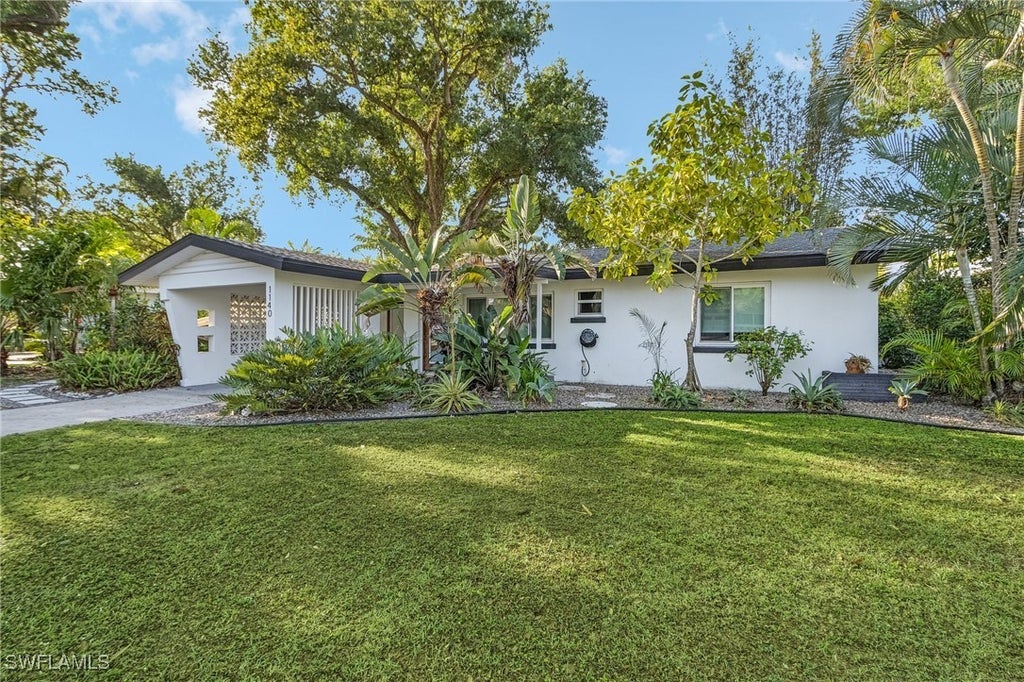 Welcome to your private oasis! This charming mid-century home sits on a peaceful canal, just moments from direct gulf access and a short golf cart ride to the golf course. Nestled in one of Fort Myers' most picturesque vintage neighborhoods, this 2-bedroom, 1.5-bathroom retreat offers everything you've been looking for. Surrounded by lush, mature landscaping—including a thriving rambutan / lychee tree— this home is a haven for beautiful birds and wildlife. Enjoy the true Florida lifestyle as you sip your morning coffee from the serene, screened-in lanai. The quarter acre property also features a 75 ft concrete seawall with potential for Sidemount boat lifts, ideal for a smaller vessel or personal watercraft. The smart kitchen, costume window coverings, in residence laundry room with sink, a carport, outdoor storage, and kayak storage all add to the appeal. The ROOF was re-shingled in 2022, and there are IMPACT RESISTANT doors and windows. Come see it for yourself—you won’t want to leave!