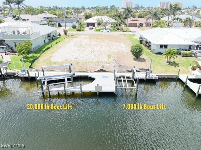 Direct Gulf Access, no bridges with intersecting canal views. This amazing opportunity to build your custom dream home within walking distance to Tarpon Point Marina. This lot has a new seawall and Trex dock/captain's walk with 2 boat lifts (7k and 20K) and 2 1,500lb jet ski lifts, and 42" by 42" glass floor window for viewing wildlife. City water and sewer, all assessments paid in full. Impact fees are paid in full.