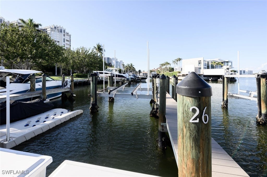 Just Listed for LEASE. This newly listed boat slip for rent at the exclusive Venetian Bay Yacht Club in Park Shore includes a 16,000 lb boat lift and offers direct access to open waters via Doctors Pass in under two miles . Located next to the Venetian Village, this premier location is available exclusively to Park Shore residents. The slip includes electric, water, lift access, and convenient parking, making it ideal for accommodating a well-sized boat.