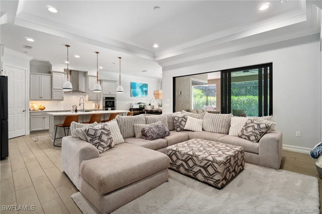 GORGEOUS POOL AND SPA PROPERTY WITH 4 BEDROOMS PLUS DEN! This stunning two-story home in the gated community of Mockingbird Crossing offers 4 bedrooms plus a den and loft, 4 full bathrooms, 2 half baths, and a 3-car garage. Situated on a private oversized lot, this home is loaded with luxury upgrades including wood-look tile floors, quartz countertops, crown molding, custom woodwork, designer lighting, and modern upgrades. The light and bright interior includes a spacious loft with its own full bath, perfect for a guest suite or media room. The expansive lanai offers covered outdoor living with an outdoor kitchen, private pool bath, and ample sunbathing space. HURRICANE IMPACT WINDOWS AND DOORS provide added peace of mind. Located in a quiet North Naples enclave Close access to both Vanderbilt Beach, Immokolee, and Collier Bvld, being located next to Founders Square, your options for premier dining and entertainment options are moments away.