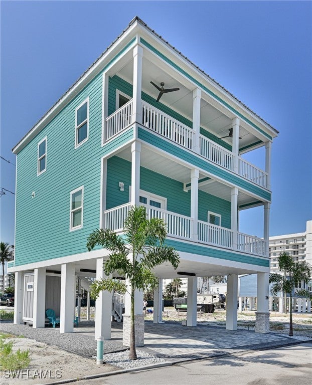 This 3 story Bonita Beach Village was just completed in 2024 an offers everything for the perfect Florida lifestyle including: a beach access just across the street to the newly re-nourished and widened beautiful Bonita Beach, a boat dock at the newly constructed and elevated seawall with the pass to the Gulf just minutes away, views of the turquoise waters of the Gulf and Bay, and a 3 bedroom 2 1/2 bath Coastal beach home built to withstand 180 MPH winds with a metal roof, impact windows & doors and concrete siding, plus it is elevated above flood requirements. Best of all is the open floor plan and finishes of the house. The main floor offers a large kitchen with island open to the dining, great room and outdoor deck plus a half bath and laundry room. The upper living level offers two bedrooms, a full bath, large master bedroom & bath and outdoor covered deck. The lower level features 2 car oversized pavered carport, enclosed storage and entrance stairs to the living levels. Features and finishes include: vinyl wood plank flooring, solid doors, quality millwork, custom cabinetry, stainless steel appliances with oversized refrigerator/freezer, quartz countertops, designer wall and floor tile in the bathrooms. The furnishings including TVs can be purchased with the house for easy immediate move in. Bonita Beach Village consists of 40 lots with eventually 30+ homes all new, with low fees ($2,000 annually) and an amazing location. There are 5 more homes being built now and 2 more getting ready to start by Owners. The Sellers have purchased another home within the community and love living there. If you are looking for a true low maintenance, no worries Beach/Bay home for the best price on Bonita Beach you have just found it.