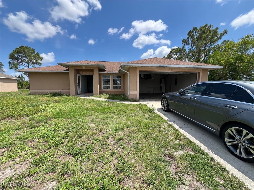 PRIME LEHIGH ACRES LOCATION AND NO HOA FEES! 3 bedroom, 2 bathroom Single-story house that needs love for a perfect home ideally situated with its oversized backyard and convenient access to SR 82 and all that Fort Myers has to offer. The A/C System is brand new. Spacious foyer leading into a great open living space featuring soaring ceilings, and a desirable split-large kitchen, dining nook and bedroom floor plan. The master bathroom includes a large walk-in closet and a combination tub and shower. An attached patio provides outdoor space.