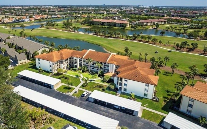 This gated Golf & Tennis community enjoys an excellent location just minutes from the picturesque beaches of Sanibel Island known for it seashell covered shores, Bunche Beach a tranquil natural escape and Fort Myers Beach a lovely hub of sun and fun. Nearby airport enhances the accessibility making it an ideal choice for seasonal and full time residents. The clubhouse offers indoor and outdoor dining full meal or casual bites with lots of planned activities. Add to this multiple pools, spas, tennis & pickleball and a newly designed work out facility. Turnkey 3rd floor Terrace 5 (2 bedroom & 2 bath unit) offers a fabulous eastern exposure from the screened in lanai, overlooking the 15th hole. Renovated and refurnished condo in 2018; kitchen (raised ceiling, 1ft x 2ft tiles, pocket lights & fan, new cabinets, granite and appliances); both bathrooms (lighting, tiles, granite, toilet, sink & cabinets); new luxury vinyl flooring with cork underlay and lighting in dining room, living room, and both bedrooms; and new air conditioner. Air condenser was replaced again in 2022 and a new condenser line installed in 2024. Building’s elevator modernized 2022 and carports replaced 2024. A must see!!!