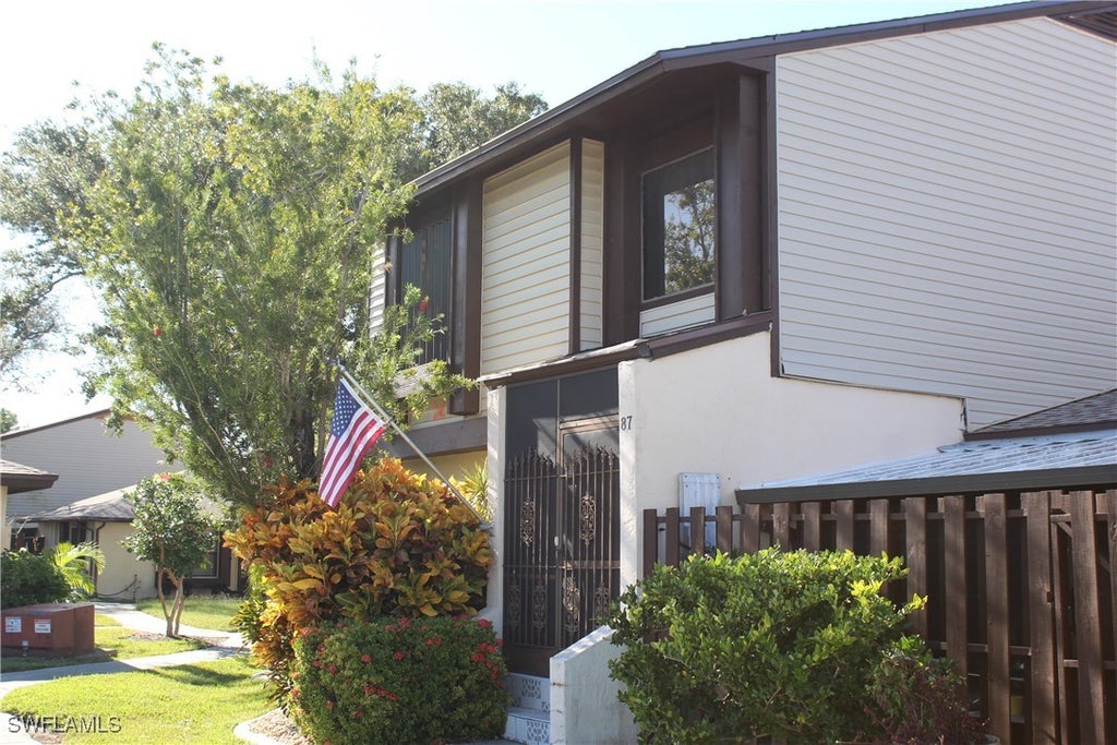 Welcome home to the Courtyards of Cape Coral. This 3 bedroom, 2.5 bath townhome comes fully furnished. The highly sought after Courtyards is centrally located, close to the hospital, schools, shopping and dining. The roof was just replaced in 2023, newer A/C and newer washer & dryer. The laundry is located inside the unit. Accordion shutters on windows and doors including sliders. There is also an enclosed lanai and patio with privacy fence. The second floor does have a chairlift that can be utilized or removed depending on your needs. Enjoy the community pool and clubhouse and low HOA fees. Schedule your private showing today!