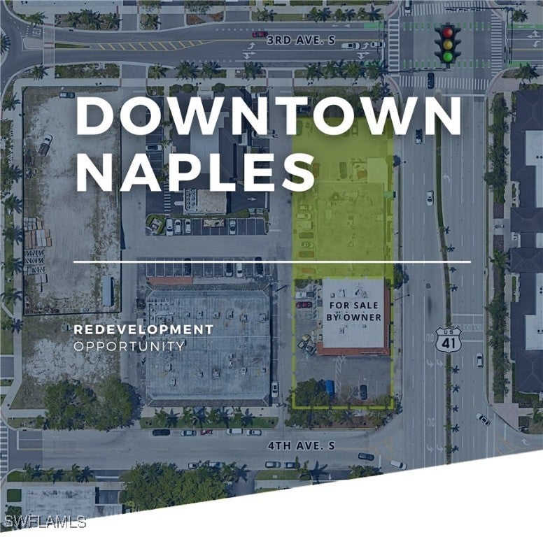 Property: 0.37± acres (16,000 sf). Adjacent 0.29 ± acres (12,800 sf) for sale by owner. 6,045 sf, single story building. 3 tenant spaces. Sale Price: $6,240,000. RE Taxes: $16,389.11 (2023). Zoning: D-Downtown (City of Naples). Highlights: Unparalleled visibility and access to downtown Naples. 2 blocks north of 5th Ave. S on US-41 surrounded by many new construction and redevelopment projects. Right in/out onto US-41, access to a fully lighted intersection at 3rd Ave. S, and downtown walkability.