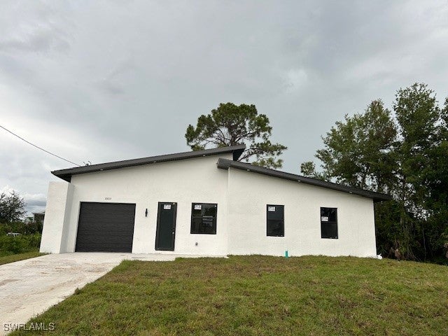 NEW CONSTRUCTION!! Fully impact doors and windows, gorgeous home in Lehigh Acres! This stunning 10ft high single-family home 3 bedrooms 3 bathrooms, an open concept layout, 1-car garage, with room for a pool. Stainless steel appliances, quartz countertops in the kitchen, laundry area and tile flooring throughout the house make it stylish and easy to maintain. This home is built with the highest standards and care