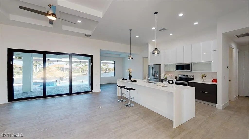 BRAND NEW CONSTRUCTION – READY BY DECEMBER 1st, 2025 | CUSTOMIZE YOUR FINISHES! 4 Bedrooms + Den | 3 Bathrooms | 3-Car Garage | Pool + Spa | Metal Roof | Welcome to your future dream home—a stunning, high-end new construction scheduled for completion by August 1st, 2025. This thoughtfully designed single-family residence offers the rare opportunity for buyers to customize their kitchen cabinet and door colors, allowing you to add a personal touch before moving in. Featuring 4 spacious bedrooms, a large enclosed den with closets (perfect as a 5th bedroom, office, or guest suite), and 3 full bathrooms, this home offers 2,234 sq. ft. of living space designed for comfort, functionality, and modern Florida living. Step inside to find warm-toned floor tiles that create an inviting and serene atmosphere throughout the home. The expansive open-concept layout flows seamlessly from the main living area into the chef-style kitchen, which will be outfitted with high-end smart appliances selected to perfectly complement your customized cabinetry and finishes. The Calacatta-style counters, ample storage, and large center island make this kitchen as beautiful as it is practical. Retreat to the luxurious primary suite, where sliding glass doors open directly to the pool area, blending indoor and outdoor living. The spa-like en suite bath includes dual vanities, elegant finishes, and a walk-in shower. The pool bathroom also features sliding glass doors to the lanai, making outdoor entertaining and access seamless for guests. Outside, enjoy the Florida lifestyle to its fullest with a 12x24 ft. pool complete with a built-in jacuzzi area—all beneath a fully covered lanai and enclosed by a durable cage structure, offering year-round enjoyment and protection from the elements. This home is built to last with a long-lasting metal roof, offering enhanced durability, energy efficiency, and sleek curb appeal. The home also boasts a 3-car garage, offering ample space for vehicles, storage, or even a workshop. All windows and doors are hurricane impact-rated, providing safety and peace of mind in any season. LOCATION, LOCATION, LOCATION! - This incredible property is located just minutes from the future 7 Islands development—a highly anticipated Cape Coral waterfront community that promises luxury waterfront dining, marina access, and upscale lifestyle opportunities. (Search “7 Islands Cape Coral” online to explore this transformative project.) Whether you're searching for a permanent residence, a vacation retreat, or a strong investment property in one of Florida’s fastest-growing cities, this home checks every box. **** Interior photos are representative and may not be exact. Final finishes and features may vary from the images shown.**** Schedule your private showing or request a walkthrough of the model home today. Your Cape Coral dream home is waiting—don’t miss this opportunity!