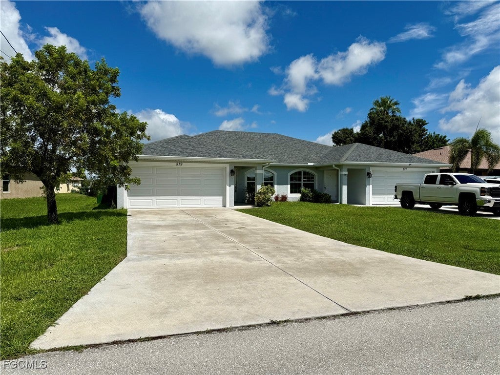Prime Location – Income-Producing Duplex in Cape Coral! Excellent investment opportunity! This duplex is conveniently located near shopping, dining, and all that Cape Coral has to offer. Each unit features a 2-car garage, 3 spacious bedrooms, 2 full bathrooms, tile flooring throughout, and a flex room in addition to the family room—perfect for an office, playroom, or additional living space. There is a built-in utility room for the washer and dryer so you can do your laundry in the air-conditioning! Both units include a covered and screened lanai, and the property offers a generous backyard space. One side is currently rented, generating immediate income. Great for investors—or live in one side and rent out the other for added income! Don’t miss this opportunity! Schedule your showing today.