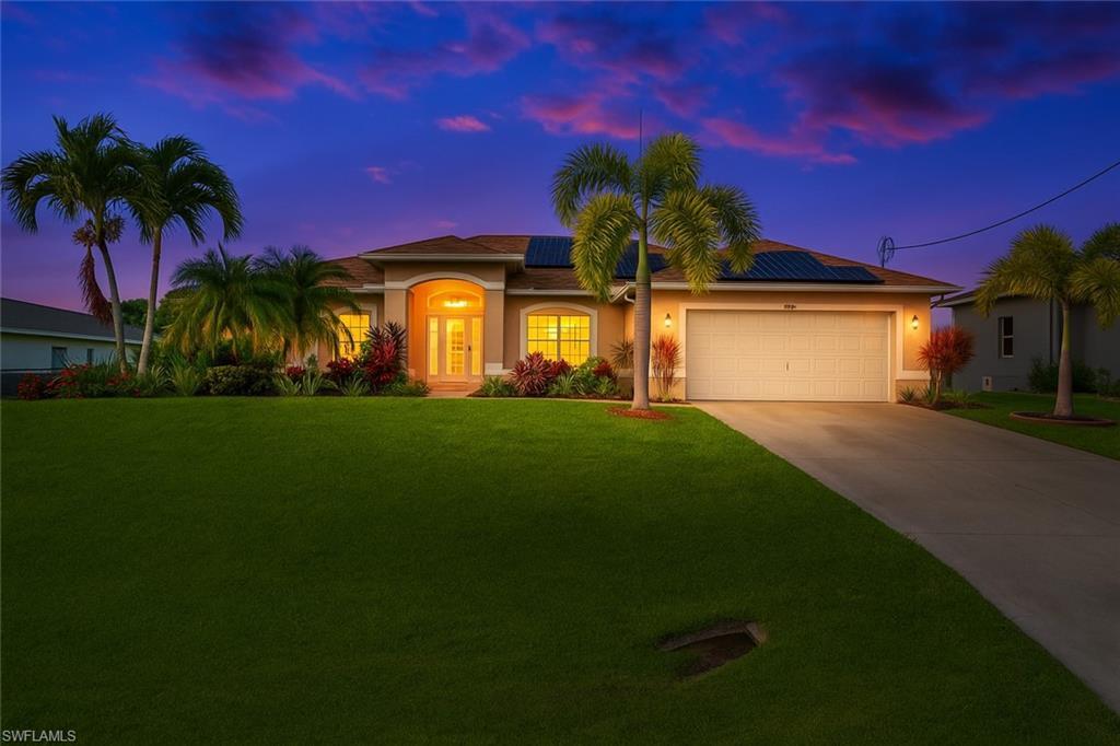 Nature Lover’s Paradise! Turnkey 4-Bedroom Waterfront Pool Home in SW Cape Coral with Full House Solar Power Welcome to your tropical escape in one of SW Cape Coral’s most conveniently located neighborhoods! This move in ready, fully furnished 4-bedroom, 2-bathroom pool home sits on a wide freshwater canal—perfect for nature lovers, bird watchers, kayakers, and fishing enthusiasts alike. Inside, you’ll find an open and airy floor plan with over 1800 s.f. of living area with vaulted ceilings, plenty of natural light, and tile flooring throughout for easy maintenance. The kitchen features solid countertops, stainless steel appliances, and a breakfast bar overlooking the spacious great room—ideal for entertaining or relaxing after a day on the water. Step outside to your private lanai and take in the peaceful water views while enjoying the screened-in solar heated pool, covered outdoor seating area, hot tub and lush tropical landscaping. Launch your kayak, canoe or paddleboard right from your seawall and explore the canals teeming with wildlife. Or drop a line and fish from the comfort of your own backyard! Storm concerns? No flooding in home here & no worries with pull down or closed shutters! The home comes equipped with a new roof & solar panels, offering incredible energy efficiency and low electric bills $25/mo—an added bonus for full-time residents or seasonal homeowners. Balance to be assumed by buyers. NO HOA here, City water & sewer are in & paid! Close to shopping, restaurants, schools, parks & more. Investor? This was a vacation rental so you can continue that or make it your own Florida retreat! Comes fully turn key! Don’t miss this slice of Florida paradise—schedule your private showing today! Check out the video tour!
