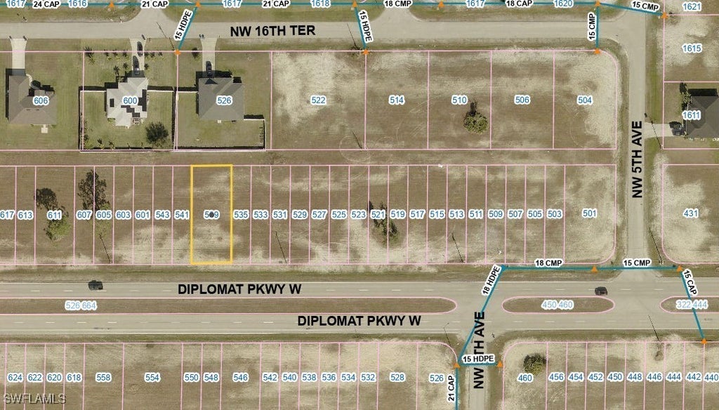 Located in Cape Coral, Cape Coral, 539 Diplomat Pkwy W (MLS®# 225059826) is a gorgeous Land. It features 0.14 acres of lot.