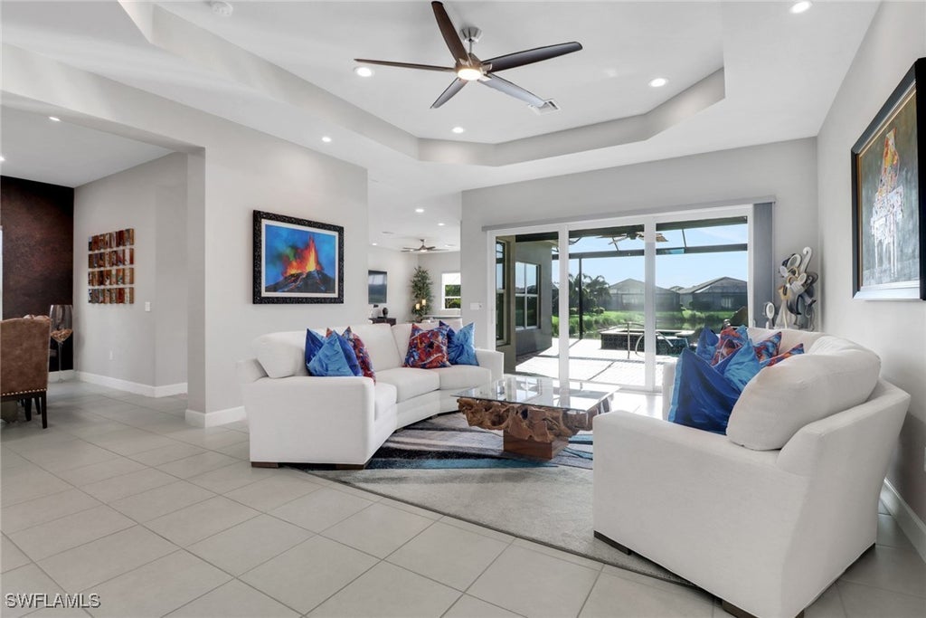 Welcome to your Florida dream home in the vibrant 55+ community of Valencia Bonita. This stunning pool home, enhanced with smart Wi-Fi hub integration, combines elegant design with modern convenience—offering the perfect blend of comfort, luxury, & peace of mind. The home has been beautifully furnished with custom-selected pieces designed to complement each space. The seller is highly flexible & open to including some or all furnishings! This home is set on a premium east-facing lakefront lot, & offers stunning sunrise views, a gas-heated saltwater pool and spa, picture-frame screen enclosure, and a summer kitchen with motorized rotisserie—perfect for morning coffee & evening entertaining. Inside, this Lydia floor plan offers 3 spacious bedrooms plus a den, arranged in a well-flowing split layout. Every detail has been thoughtfully upgraded—from tile & luxury vinyl plank flooring, to $10,000 in designer lighting, to remote-controlled window treatments that make daily living effortless. The gourmet kitchen has newer LG stainless appliances, large island, huge pantry, cabinet pull-outs, & an adjacent dry bar. The den features a full wall of custom built-ins for display, storage, or a home office. The laundry room offers custom cabinetry, LG washer/dryer, a wine cooler, utility sink, & a second refrigerator. Owned solar panels (with the current solar loan to be paid off by the sellers at closing) keep electric bills at just $26/month. Additional energy-efficient & high-tech upgrades include a tankless water heater, Sonos sound system, integrated TVs, & an Asus mesh Wi-Fi system for seamless whole-home connectivity. And when it comes to peace of mind, you’re covered with impact glass windows & doors, a whole-house Generac generator, & a remote-controlled hurricane screen to protect lanai furniture. The garage is insulated, climate-controlled with a mini-split A/C, & includes finished floors & generous storage—ideal for your tools, hobbies, or home gym. As a resident of Valencia Bonita, you’ll enjoy a lifestyle like no other. The gorgeous 45,000 sq ft clubhouse offers dining, a spa & nail salon, fitness center, Broadway-style entertainment, & a full social calendar. Outside, lounge by the sparkling resort-style pool, or enjoy a refreshing workout in the comfort of the shaded lap & resistance pools. There is also tennis, pickleball, bocce, sidewalks, & two dog parks—all just minutes from the Gulf beaches, fine dining, shopping, I-75, and RSW Airport. This is more than a home—it’s a lifestyle, & it’s waiting for you!