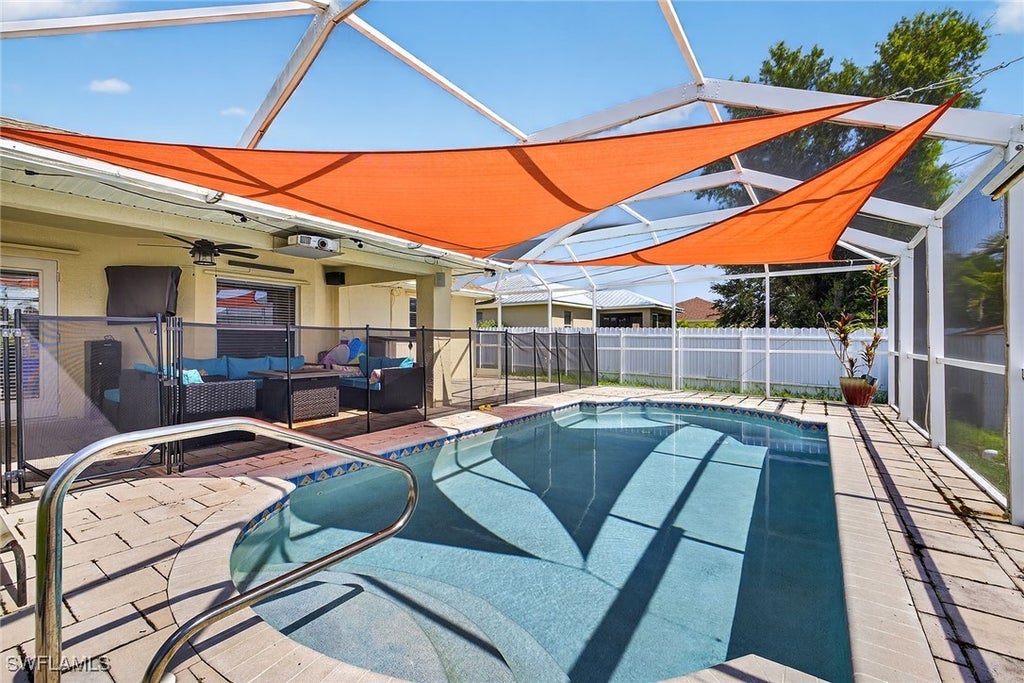 Motivated seller and move-in ready! This beautifully updated residence is nestled on a desirable corner lot in one of Cape Coral’s peaceful, well-kept neighborhoods, offering a perfect blend of timeless charm and modern upgrades. Inside, elegant porcelain tile floors lead to a fully renovated kitchen and bathrooms featuring soft quartz countertops and chic glass-enclosed showers. The spacious screened lanai overlooks a sparkling pool and a fully fenced yard, ideal for entertaining or relaxing in privacy. A double-wide gate provides convenient access for a boat or RV, perfect for those who embrace Florida living. Recent improvements include a hurricane-rated roof (2022), new well and advanced water filtration system with UV and reverse osmosis (2022), pool heater (2022), updated fencing (2020), and a new garage door, every detail thoughtfully considered for a lifestyle of comfort and ease. With the seller already moved out, this exceptional home is ready for immediate enjoyment—don’t miss the opportunity to make it yours.