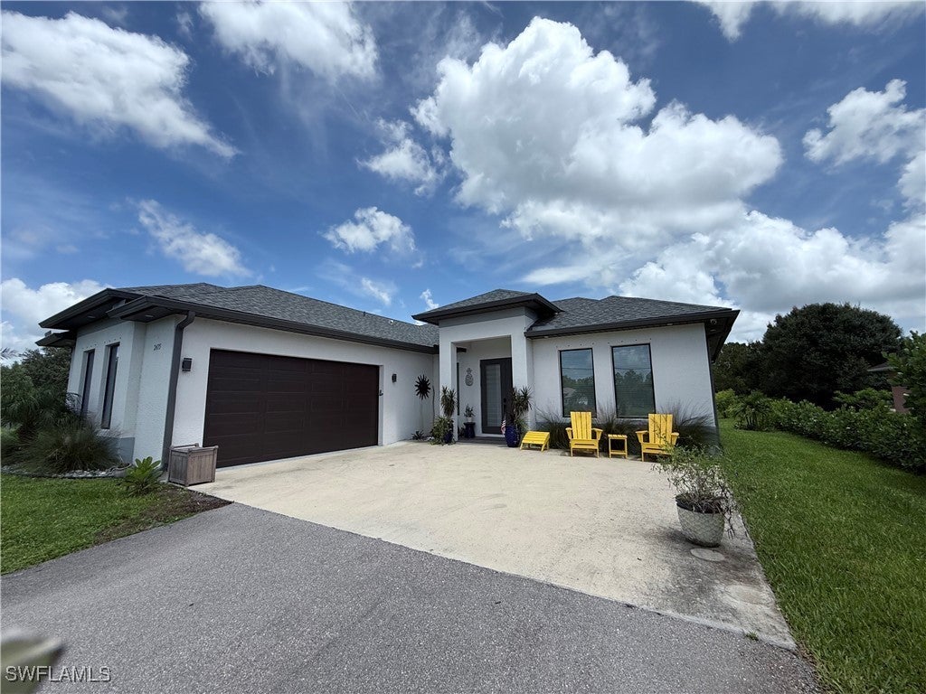 This stunning 3-bedroom + den, 2-bathroom home located at 2475 29th Ave NE, Naples, offers a modern design with a perfect balance of style, convenience, and privacy. Sitting on 1.14 acres, the property provides ample space for outdoor activities and offers a sense of openness and tranquility. Built in 2022, the home features high-end finishes and smart home technology. The spacious living areas are complemented by large tile flooring throughout, creating a sleek, contemporary feel. The master suite includes custom walk-in closets, an enclosed TV area, and a luxurious walk-in shower in the ensuite bathroom. The second bedroom also features a custom reach-in closet. Smart home features include an Ecobee thermostat, smart light switches, a front-entry keypad, a garage door app, an ADT security system, six security cameras around the perimeter, and a Ring doorbell. The home also has six upgraded ceiling fans, including one on the fully screened lanai, and Zebra blinds on all windows. The exterior of the home is beautifully lit with LED downlights around the home and solar landscape lighting to enhance the property's curb appeal and provide ambient lighting for evening relaxation. The 2-car garage features finished flooring and custom overhead storage. Outside, you'll find professionally landscaped grounds with Clusias for added privacy, along with a variety of fruit trees, including cherry, banana, coconut, and avocado trees. Conveniently located just two miles from shopping, including Super Publix, Ace Hardware, and Aldi, with nearby access to beaches and the Hard Rock Casino. This home offers the ideal blend of comfort and privacy in a tranquil setting. Don’t miss the opportunity to rent this modern, move-in-ready home!