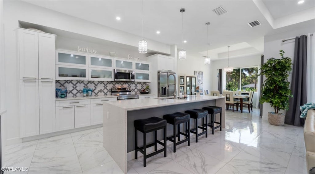 **MOTIVATED SELLER** Discover the Golden Gate Estates Lifestyle! Step into this beautifully maintained home, ideally situated on 1.59 acres of upland. With 3 bedrooms plus a den, 2 full bathrooms and 2 car garage, this spacious property offers the perfect blend of comfort and functionality for modern family living. The open-concept kitchen is a chef’s dream, featuring quartz countertops, soft-close cabinetry, stainless steel appliances, and plenty of storage—perfect for cooking, hosting, and everyday meals. Enjoy peace of mind and privacy with a fully fenced yard and electric entry gate. For clean, reliable water, the property is equipped with a NEW REVERSE OSMOSIS system featuring a 500- GALLON TANK and DOUBLE filter—ensuring high-quality water throughout the home. Outdoor features include newer above-ground POOL with a DECK and TIKI BAR, a 26x16 STORAGE shed with a full shelving system, freshly updated landscaping with a variety of fruit trees plus a sprinkler system, to help keep the grounds lush and vibrant year-round. The home is generator-ready with a DIRECT CONNECTION to the electrical panel, and a 50-amp RV HOOKUP. Minutes away from Everglades/Golden Gate BLVD Shopping plaza. Don't miss your chance to own this slice of paradise in beautiful Naples, FL!!! Schedule your showing today!