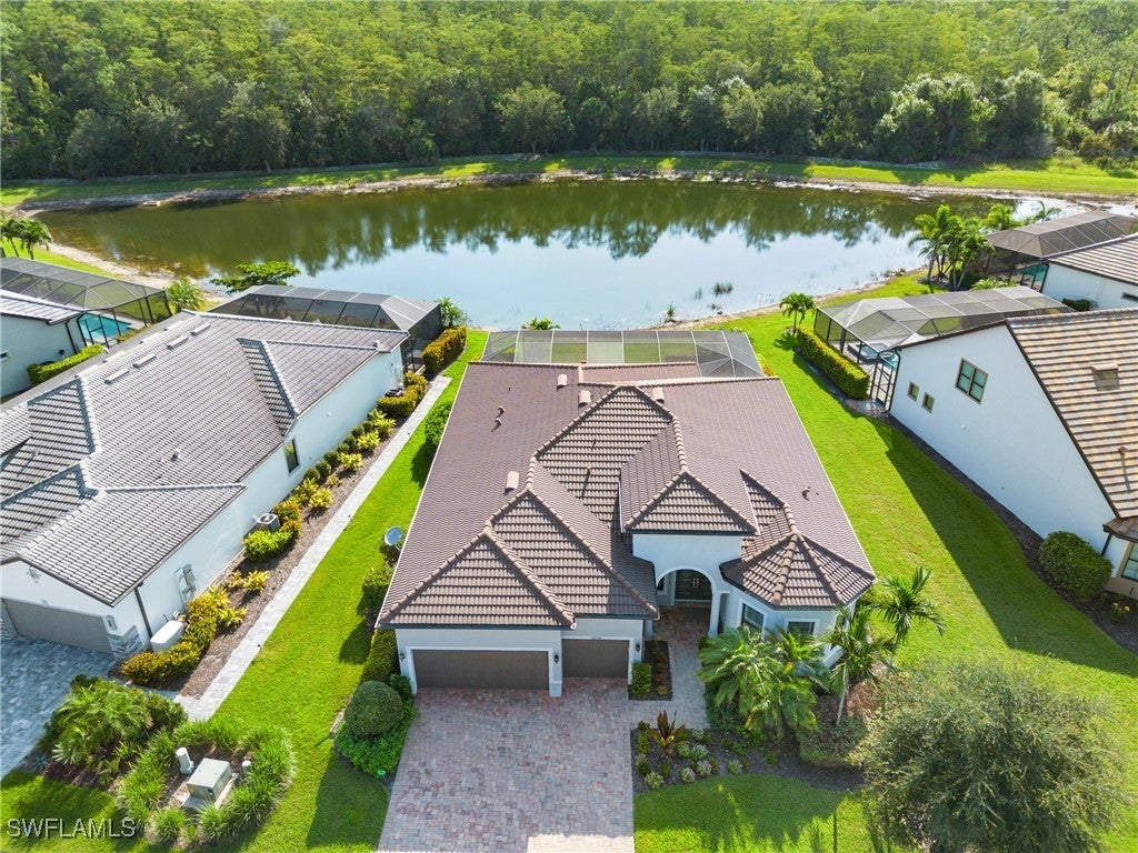 Financing fell- BACK ON THE MARKET! Live like your on vacation everyday here in the RESORT STYLE Gated Community of Corkscrew Shores! Rare view offers privacy & tranquility overlooking the lake & woods. Spacious tropical yard with elbow room features a covered lanai (with hook-up for your outdoor kitchen). Screened-in heated POOL & SPA WITH CASCADING WATERFALL & unobstructed view thru the 'picture window' enclosure! Indoor/outdoor dining options intermingle with full wall of zero-corner sliding glass doors. FURNISHED & READY FOR YOU NOW! Open floor plan- Pinnacle model by Pulte Homes. 3 bedrooms (2 ensuite), den/office & 3 full baths. Chefs kitchen with white cabinets, oversized island with seating, beverage nook with wine cooler & granite counters. Owners retreat with fresh paint & flooring, huge walk-in closet. Feel protected with hurricane IMPACT windows. 3 car garage with epoxy coated flooring. Low traffic cul-de-sac. NO CDD OR CLUB FEES. NOT IN A FLOOD ZONE. Amenity island overlooking the 240-acre lake features: Zero edge pool w/fountains, spa, indoor/outdoor restaurant & bar, firepits. Kayak & canoe launch, fishing pier, boating (non-gas), 24-hr state of the art fitness, movement studio, basketball, tennis, bocce, ping pong, pickle-ball courts, playground, picnic area. Close to FGCU, Airport, Hertz Arena, open air shopping & dining.