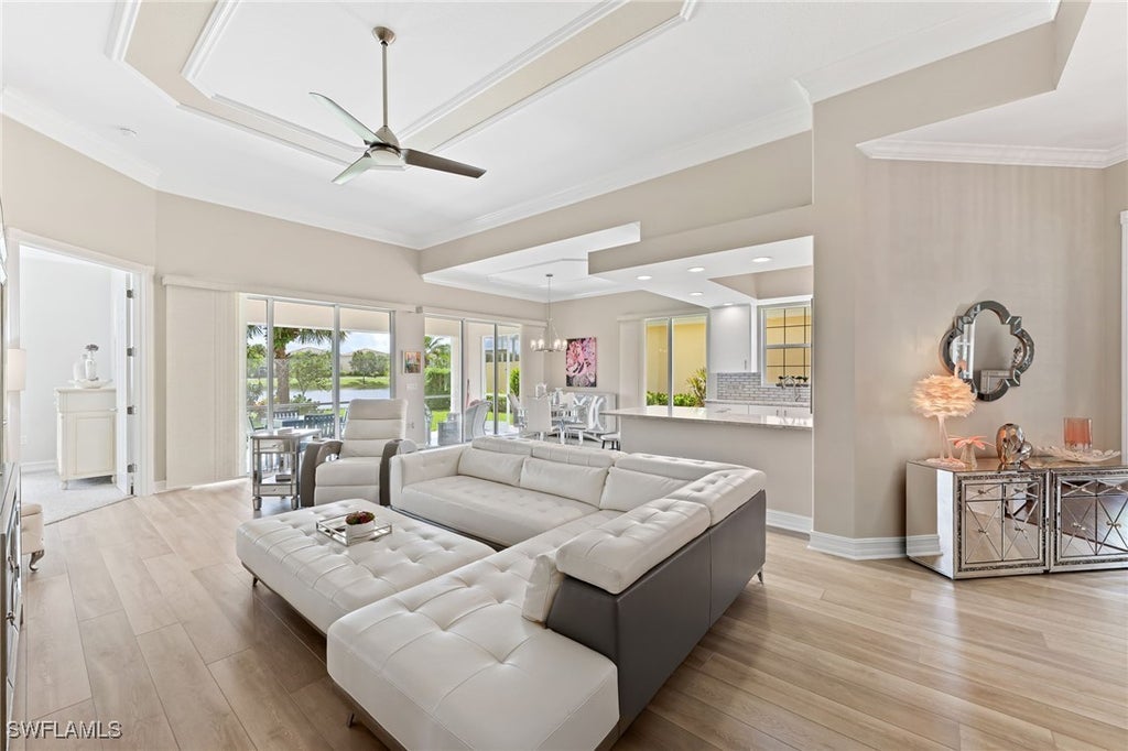 Welcome to the Oakmont model home in Verona Walk—a beautifully updated, move-in-ready residence you won’t want to miss. This home has been thoughtfully upgraded with features and finishes that add both style and function. Step inside to find gorgeous Plus Premium vinyl flooring that runs throughout the main living areas, complemented by new baseboards and newly installed crown molding & ceiling molding for a clean, modern touch. The kitchen was fully renovated in 2020 by Kitchen Solvers and features a sleek, modern backsplash that pairs perfectly with slate appliances (2017). The dishwasher was recently replaced in 2024, adding even more convenience. The den, accessible through new French doors, features rich Acadia wood flooring (2014) and is filled with natural light—making it an ideal space for a home office or guest room. The spacious master bedroom includes new carpet (2018) and a large en-suite bathroom. Both the bedroom and bathroom have been freshly painted. Throughout the home, you’ll find custom mirrors and upgraded lighting fixtures from Lighting First, enhancing both bathrooms and main living spaces. The two guest bedrooms are bright, spacious, and outfitted with the same premium vinyl flooring, offering comfort and style for family or visitors. The laundry room is clean and functional, complete with a utility sink. Additional updates include; water heater replaced in 2021, AC unit professionally serviced every six months and Hurricane shutters installed in 2009 by AAA Hurricane Protection (electric shutters on the lanai, roll-down on all other openings). The community of Verona Walk is a vibrant and friendly community. You’ll enjoy access to a well-appointed Town Center featuring a café, ice cream shop, post office, gas station, salon, bank, and even a full-time activities director. Just minutes from downtown Naples, this home is close to white sand beaches, restaurants, and shopping. Don’t miss your chance to see this exceptional home—schedule a showing today!