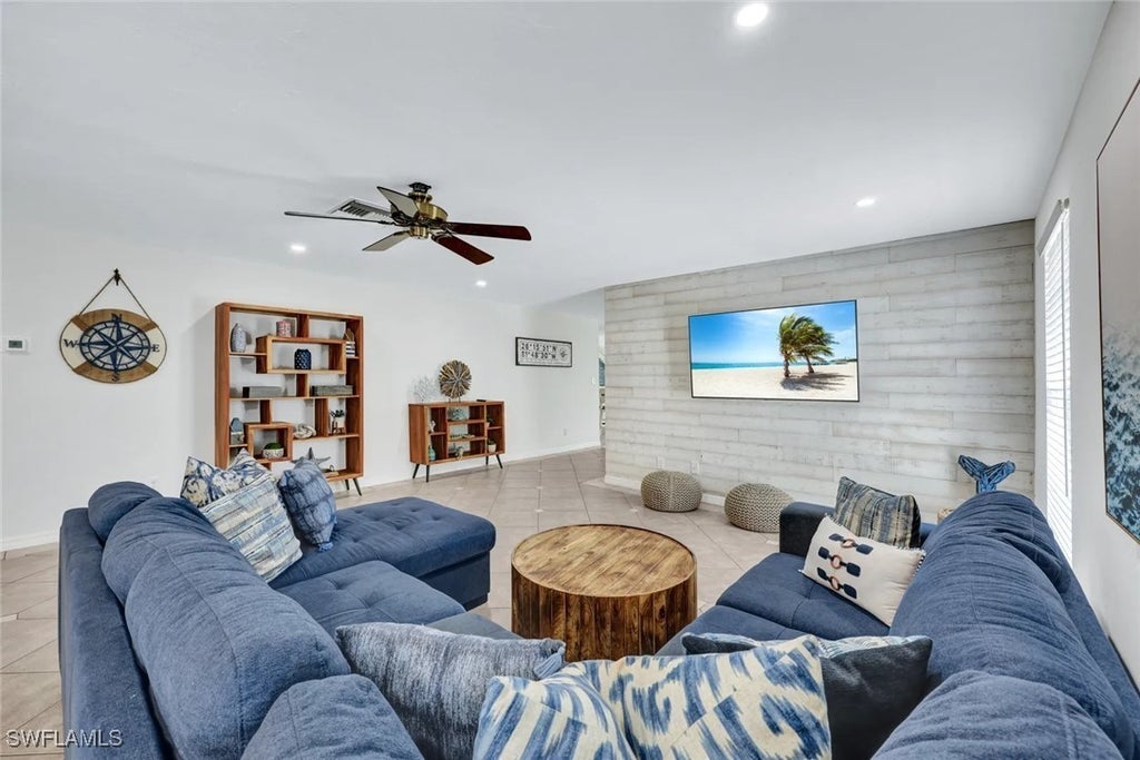 Looking for a spacious coastal atmosphere? Look no further! 3 generously sized bedrooms plus a den, providing plenty of space to spread out, room for a home office too. Enjoy living room plus family room, open kitchen with expansive breakfast bar perfect for entertaining! The open-concept kitchen, complete with stainless steel appliances and granite countertops, flows seamlessly into the living spaces, making it the heart of the home. New A/C, new water heater, freshly painted and new lighting. Fenced in back yard! Just a bike ride to white sugar sand beaches plus a plethora casual and fine dining, movie theaters, La Fitness, Whole Foods, Trader’s Joe, The Ritz and luxury shopping at Mercato. This is the Naples lifestyle you have been looking for! Move in today!