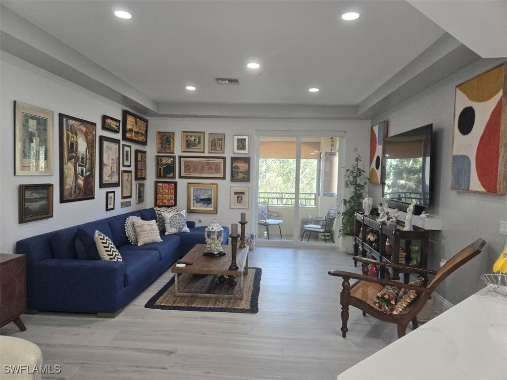 Step into this immaculate completely updated condo in the gated community of Isles of Porto Vista. This home perfectly blends style and comfort. Nothing to do in this top floor corner unit except relax and enjoy the view and amenities. The light-filled living area features porcelain tile plank flooring, fresh neutral paint, and an impact resistant sliding door which opens to a private screened lanai with peaceful pond views. The lanai features colorful Iberian tile and ample storage. The kitchen, upgraded with white Shaker cabinets, a quartz waterfall countertop, and stainless-steel appliances, flows seamlessly into the living and dining areas. The porcelain tile flooring continues into the spacious primary bedroom with a walk-in closet and en-suite bath. The bath has been updated with shaker cabinets, quartz countertops, and a modern glass shower enclosure. The second bedroom features tile flooring and can function as a guest room, office, or exercise/craft room. The second bathroom has custom made Shaker cabinets and a tub/shower combo. Additional features include an in-unit laundry, modern lighting, vaulted ceilings, 7" baseboards, Levolor blinds, and impact-resistant windows. The building has a new roof and an elevator for easy access. The Isles of Porto Vista is an active community with resort style amenities such as a community pool, a clubhouse with kitchen for private parties, grilling areas, walking trails, a fitness center, playground, a dog park, and pickleball. Centrally located in Cape Coral close to US 41/Tamiami Trail, I75, RSW airport, and Downtown Fort Myers.