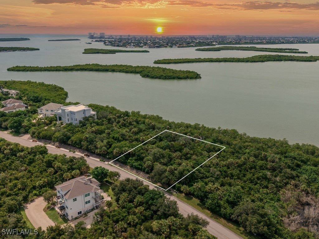 Exceptional opportunity to build your dream home within private, gated Key Marco. Nestled along the scenic waterways, this generously sized homesite offers breathtaking views of Barfield Bay and ample space, 0.9 acres, for your custom designed home, garden, and outdoor living areas. Sale of this homesite includes plans for a one-of-a-kind designed, elevated home. Experience stunning sunsets from your future home, painting the sky with vibrant colors as the sun sets over the water, creating an idyllic setting for relaxation and entertainment. Surrounded by lush landscaping and native Florida flora, this property provides a peaceful retreat. Key Marco offers many fine amenities including direct access boat slips, world-class fishing right from the community dock, renovated clubhouse with fitness center, community room with catering kitchen and event space, tennis, pickleball, and more. Enjoy the tranquility of Key Marco while being minutes from dining, shopping, entertainment, and Marco’s crescent shaped beach.