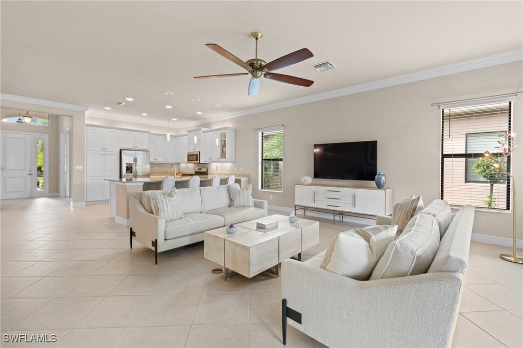 Welcome to Stonecreek a natural gas community with a whole-home natural gas generator, Culligan water filtration system + reverse osmosis at the kitchen sink. Enjoy peaceful lake views and an unbeatable lifestyle in this beautifully maintained 2019 single-family home. Offering 2 bedrooms + den, this 2,081 sq. ft. residence is move-in ready and filled with upgrades. Step inside to an airy, open-concept great room with crown molding, high ceilings, and all-tile flooring (no carpet!). The bright kitchen features white cabinetry, granite countertops, stainless steel appliances, and a brand-new Bosch dishwasher. A spacious den offers flexibility as a home office or potential third bedroom. The generous primary suite includes two walk-in closets and a spa-like bath with dual vanities, granite countertops, soaking tub, and separate shower. An oversized laundry room with cabinetry, laundry tub, and extra storage adds everyday convenience. Relax on the screened lanai overlooking tranquil east-facing lake views, with a large yard, fenced pet run, and space to add a pool. UPGRADES include Whole-home natural gas generator, Impact windows in the front and hurricane shutters throughout + an upgraded hurricane-rated garage door, Culligan water filtration system + reverse osmosis at kitchen sink, Screened lanai, fenced yard dog run, and more. Located in the vibrant Stone Creek community, residents enjoy a clubhouse, fitness center, resort-style pool and spa, lap pool, pickleball, tennis, basketball, volleyball, yoga, hobby room, playground, and a full-time activities director. This home truly has it all — lake views, upgrades, and the best amenities in Stone Creek. Move-in ready and waiting for you!
