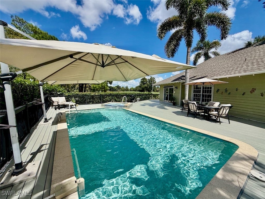 Outstanding location, views and light are the definition of this beautifully updated 3br/3ba single family home in sought after Golf Cottages of Wyndemere. Welcome to 28 Golf Cottage Drive, ideally situated at the end of a lovely tree-lined cul-de-sac, on one of the largest and most private lots in the neighborhood with sweeping 180 degree views creating an exceptional backdrop of light and scenery from sunrise to sunset. Inside, the home has been extensively renovated for style and comfort. The newly updated kitchen features quartz countertops, modern cabinetry, and an induction cooktop—perfect for everyday living and entertaining. The ground-floor primary suite includes a new spa-like bathroom with dual vanities and an oversized walk-in shower, creating a serene retreat. A second bedroom and renovated bathroom on the main level provide flexible living options, while an additional upstairs guest suite—with its own long-range views—provides comfort and privacy for visitors. The main living area boasts soaring vaulted ceilings and abundant natural light, complemented by a built-in bar/drinks /coffee station perfect for entertaining. Ample storage is thoughtfully integrated throughout, including in the garage. Outdoor living is equally impressive. A sunny pool with integrated spa and tranquil water feature is framed by a newer nearly 2,000 sq. ft. composite deck—ideal for entertaining or relaxing in the Florida sunshine. A fenced yard ensures privacy, while the screened lanai and inviting front porch offer additional serene spaces. Recent major updates include a new roof (2024), new A/C (2025), and a whole-house generator with a 500-gallon tank for peace of mind. Wyndemere Country Club is one of Naples’ premier gated communities, offering 27 holes of Arthur Hills–designed championship golf, a newly renovated clubhouse, resort-style infinity pool, state-of-the-art fitness and spa center, 10 Har-Tru tennis courts, pickleball, bocce, croquet, and a vibrant social calendar. HOA fees cover grounds maintenance and irrigation for low-maintenance living. Just minutes from downtown Naples, Gulf beaches, and the airport, this home combines luxury, lifestyle, and location. Move right in and enjoy the best of country club living at Wyndemere.
