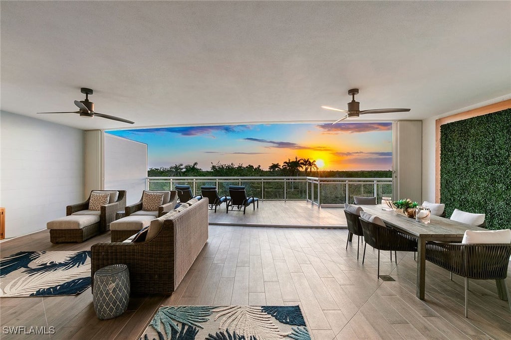 Experience the ultimate in five-star resort living in this exquisitely designed and furnished residence. This exceptional home offers something special and only enjoyed by this level of ownership: 1,242 square feet of open terrace that essentially doubles your living space, creating a remarkable 4,532 total square feet of indoor-outdoor luxury. Go inside to discover four bedrooms, three full baths and one-half bath, thoughtfully arranged in a split floor plan that provides everyone with their own space. The great room flows seamlessly through floor-to-ceiling sliders that pocket when opened, framing those incredible sunset views over the mangroves and preserve beyond. Culinary-grade kitchen appointed for the serious gourmand with Wolf and Sub-Zero appliances, a steam oven, dual dishwashers, natural gas cooktop, and a butler's pantry that keeps entertaining effortless. Beautiful Italian Legno Bastone wood floors flow throughout, adding warmth to the sophisticated design. Primary suite is a private retreat where you can unwind after long days with its custom walk-in closet, separate shower and soaking tub. Completing this home are two additional en-suite bedrooms, plus a bedroom that is being used as an office but may easily serve as a den or guest bedroom, as it has a half bath located nearby. Living at Kalea Bay means access to resort-style amenities, including the rooftop pool, clubhouse, state-of-the-art wellness center, outdoor fire pits, adults-only pool, kids' wading pool, on-site dining, spa services, guest cottages, pickleball, tennis to name a few. Built in 2022, complete with impact windows, secure under building parking, and building generator system that keeps your refrigerator and butler's pantry outlet powered, offering peace of mind during outages. This is maintenance-free living at its finest, providing the space and privacy of a single-family home with all the provisions you could want. Don't miss this outstanding opportunity to embrace the extraordinary Naples lifestyle that you deserve.